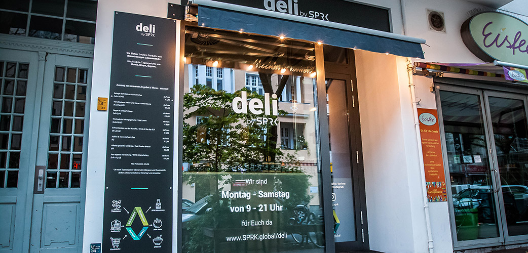 In dem Ladenlokal im Akazienkiez in Stadtteil Schöneberg werden Produkte der SPRK.manufactory zum Verkauf und täglich wechselnde Gerichte zum Mitnehmen angeboten. Zum Angebot des Delis gehören Suppen, Wraps, Bowls, Gebäck und Brot sowie Getränke aus frischem Obst und Gemüse wie auch Kaffee-Spezialitäten. Alle Gerichte werden auch in einer vegetarischen Variante angeboten.
