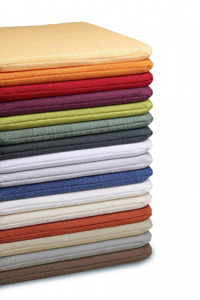 Zum Start der Freiluftsaison empfiehlt Wäschekrone maßgefertigte Outdoor-Stuhlkissen (Foto links): „Bequem, strapazierfähig und nach individuellen Wünschen gefertigt – unsere Stuhlkissen in ansprechender Leinenoptik polstern jeden Stuhl und jede Bank optimal auf." In 16 Farben erhältlich, lassen sie sich entweder als Kontrast oder Ton-in-Ton zur Leinenstruktur-Tischwäsche aus derselben Kollektion kombinieren. Die Kissen können neben den zwei Standardgrößen 38x38x3 cm und 25x220x3 cm auch individuell nach Kundenwunsch gefertigt werden. Der Teflonschutz verleiht ihnen nach Angaben von Wäschekrone fleckabweisende Eigenschaften und die gute Lichtechtheit von 4-5 sorgt für Langlebigkeit auch unter freiem Himmel.