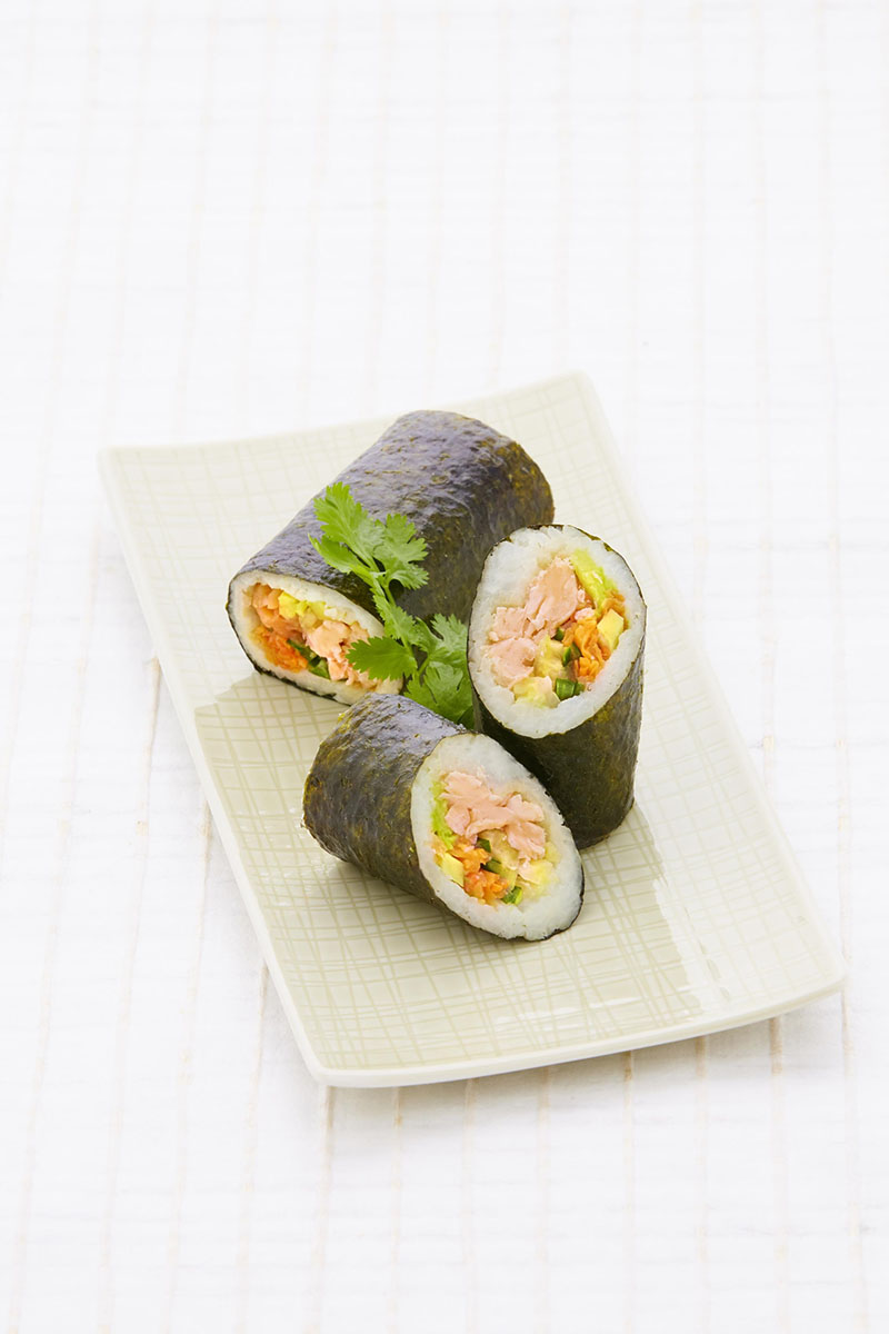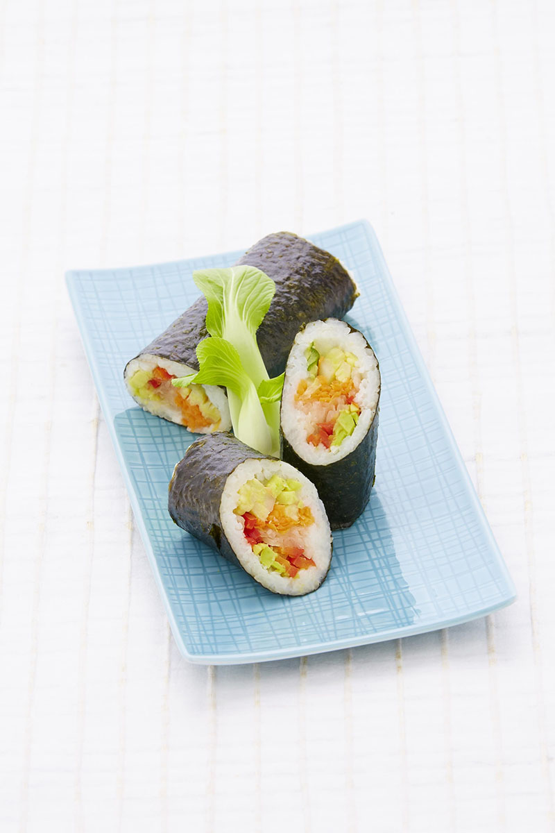 Bei den Neuheiten "Sushi California Lachs vegan" und "Sushi California Tuna vegan" – veganer Lachs- oder Thunfisch aus Tapioka in Kombination mit kräftigem grünem Spargel und Wakame, umhüllt von weißer und schwarzer Sesamsaat – kommen auch Veganer auf ihre Kosten. Die individuell portionier- und kalkulierbaren Maki Rollen werden ebenfalls um eine vegetarische Variante erweitert, die japanischen Reis mit zartem weißem Spargel und Karotte kombiniert.