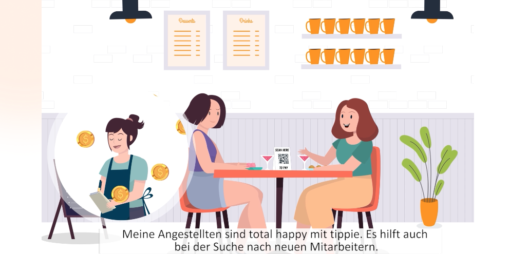 Die Kundinnen und Kunden vor Ort scannen ausschließlich einen QR-Code und können dann mit einem Touch in nur wenigen Sekunden auswählen, wieviel Trinkgeld sie via PayPal, Apple/Google Pay, Visa oder Mastercard ihrer Servicekraft geben wollen. Die Mitarbeiterinnen und Mitarbeiter bekommen das Geld steuerfrei sofort an das private Konto gesendet. Durch die einfache Zahlweise, kann die Servicekraft bis zu 30% mehr Trinkgeld als üblich bekommen. Für den Inhaber entsteht dadurch weniger Verwaltungsaufwand.