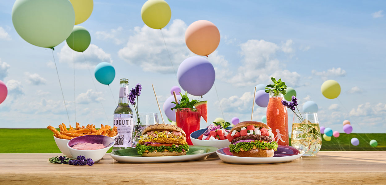 Im Mittelpunkt der Aktion stehen Wassermelone und Lavendel, die in Burgern, Salaten, Dips und Getränken interpretiert werden und außergewöhnliche Geschmackserlebnisse versprechen. So brilliert der Rindfleischburger GEISSLEIN mit einer Liaison aus Wassermelonensalat und veganen Hirtenwürfeln. Der Burger mit veganer Hähnchenalternative entfaltet mit einem aromatischen Lavendeldip, den es im Aktionszeitraum auch als Extra zu bestellen gibt, seinen vollen Geschmack.