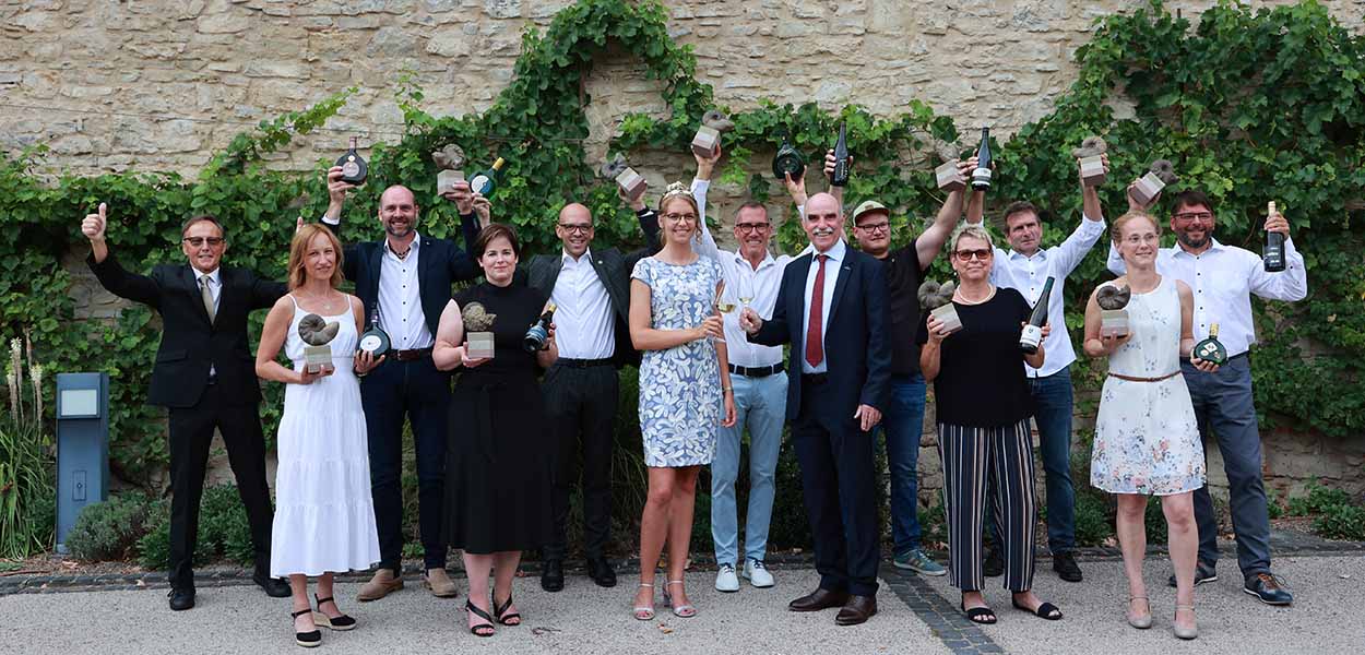 Auf der feierlichen Preisverleihung unter der Moderation von Carolin Meyer stellte Frankens Chef-Önologe Hermann Mengler die zehn Siegerweingüter vor. Anschließend überreichte die 65. Fränkische Weinkönigin Eva Brockmann den zehn strahlenden Siegern die begehrten Trophäen von Best of Gold, den 250 Millionen Jahre alten versteinerten Ceratit Nodosus, einen versteinerten Urzeitkopffüßer auf dem Trias-Sockel.