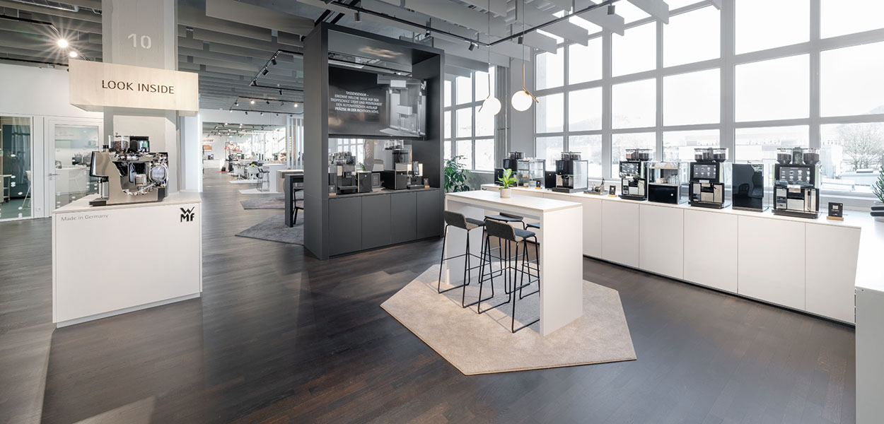 Seit jeher erleben Kunden und Partner von SEB Professional die zahlreichen Premium-Angebote auf ganz individuelle Weise – sei es während eines Messegesprächs, beim Besuch eines lokalen Showrooms (etwa dem 2022 eröffneten WMF Showroom in Hamburg) oder der Beratung im virtuellen Showroom über das Internet. Das neue SEB Professional Experience Center ergänzt diese Kommunikationsvielfalt um eine neue Dimension: Die 700 qm umfassende Ausstellungsfläche bietet Besuchern eine ganzheitliche Markenkompetenz – von WMF Professional Coffee Machines über Schaerer und Curtis bis hin zu WMF Professional Hotel Equipment und HEPP.