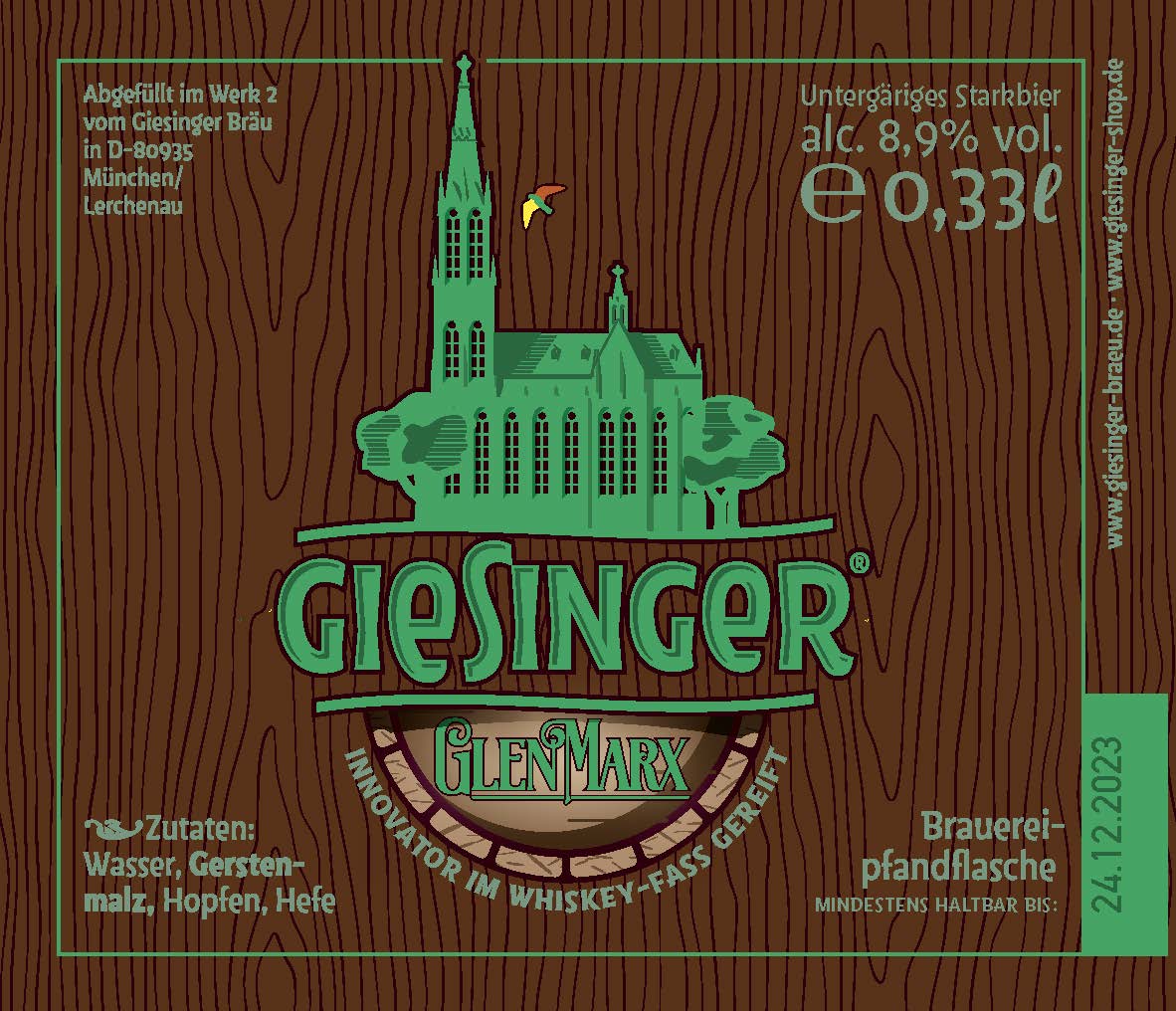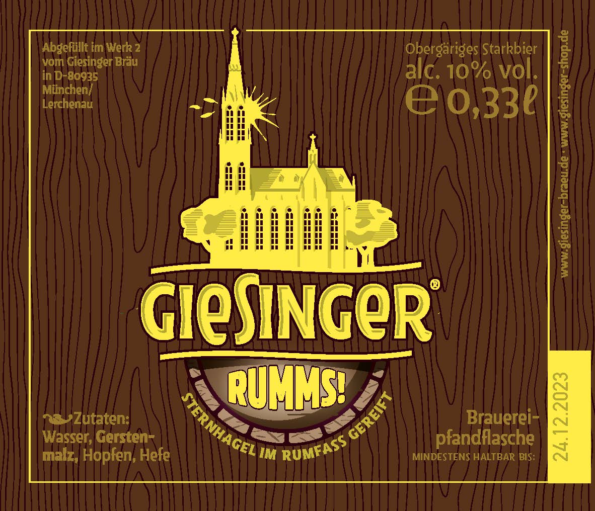 Als aktuell einzige Münchner Brauerei bietet der Giesinger Bräu traditionelle Fasslagerung bei zwei seiner Biersorten an. Passend zur Verlängerung der Starkbierzeit werden "Innovator" und "Sternhagel" nach monatelanger Reife in gebrauchten Holzfässern abgefüllt. In den insgesamt vier Holzfässern waren zuvor jeweils Jamaica-Rum, Martinique-Rum, Cognac und Whiskey gelagert. Durch die speziellen Aromen erhalten die beiden Giesinger Biere weitere intensive Geschmacksnoten, passend zum jeweiligen Bierstil. Herausgekommen sind vier Spezialsorten, die ab 5. April für kurze Zeit im Handel, an der Rampe und im Stüberl erhältlich sind. Die Menge ist auf 3.000 Liter begrenzt.