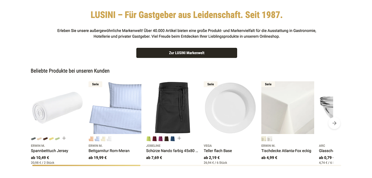 Größte Produktauswahl für alle Gastgeberinnen und Gastgeber: Die LUSINI Group hat ihren Online-Marktplatz mit exklusivem Partnermarken-Programm gestartet. Mit diesem Schritt erweitert das bayerische Familienunternehmen, das zu den führenden Gastronomie- und Hotellerieausstattern in Europa zählt, sein Sortiment bis Mitte 2024 um 50.000 Artikel zahlreicher Partnermarken auf rund 100.000 Artikel. Die ersten Produkte bekannter Marken für Gastronomie- und Hotelausstattung wie Churchill, Helios oder auch Dometic sind bereits im LUSINI Online-Shop erhältlich.