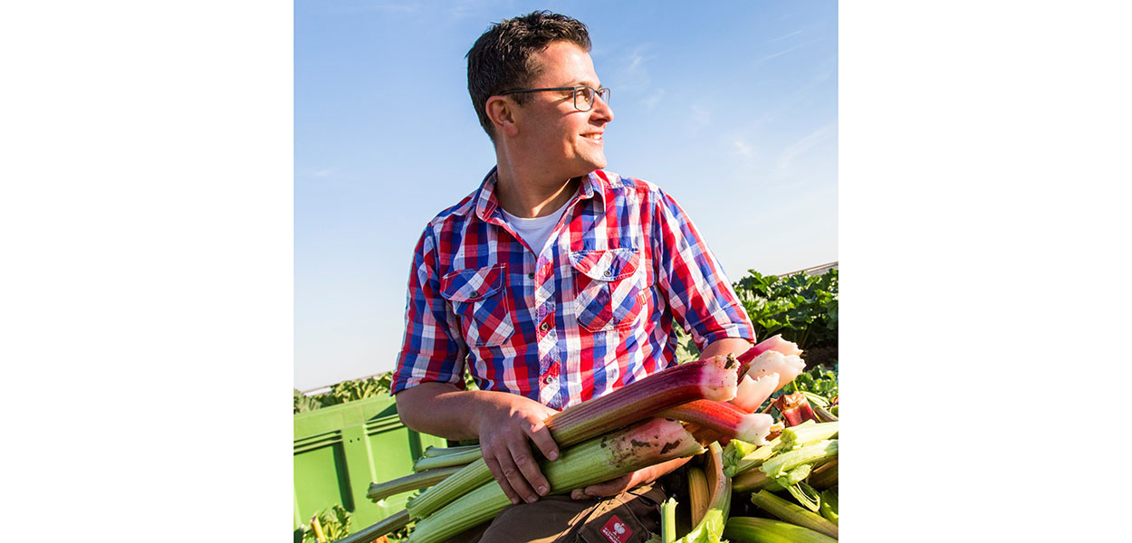 Rhabarber benötigt tiefgründigen, mineralhaltigen Boden. Dieser ist in Bayern eher selten, doch die Gegend um Würzburg bildet eine Ausnahme. Landwirt Tobias Sauer baut hier vorrangig die Sorte Goliath an, die bis zu einem Meter lang und zehn Zentimeter dick werden kann. Von seiner Rhabarber-Ernte fließt etwa die Hälfte in die Getränke von Wolfra. Rotfleischige Sorten wie Himbeer-Rhabarber ergänzen die Nektare und Schorlen des Erdinger Unternehmens und geben ihnen eine schöne, rötliche Farbe.