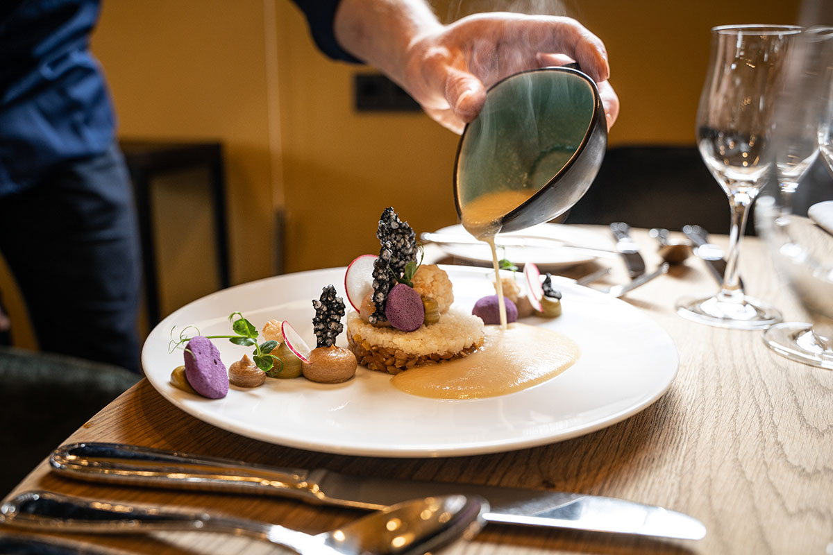 Der erfahrene Koch und Biersommelier begeistert seine Gäste mit einer raffinierten Speisekarte voller Überraschungen mit dem Wunsch, dass sich die Schnelllebigkeit des Alltags an den Tischen verläuft.