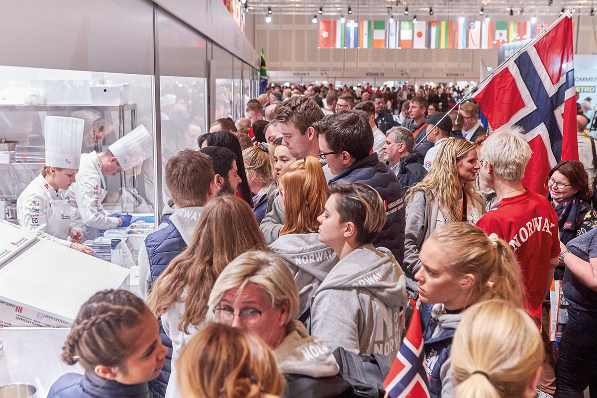 Bei der IKA/Olympiade der Köche treten Köchinnen und Köche aus 60 Nationen im fairen Wettbewerb gegeneinander an. Viele Nationalteams wie hier Norwegen haben ihre eigene Fankolonie dabei.
