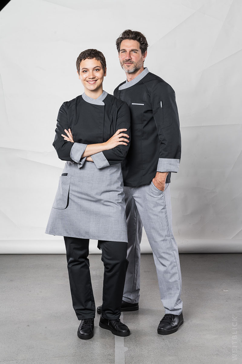 Von hochwertigen Kochjacken über Westen und Schürzen bis hin zu trendigen Cargohosen mit Patten und Gesäß- sowie Leistentaschen bietet die Linie ein optimal abgestimmtes und umfangreiches Angebot an Kleidungsstücken. Abgerundet wird sie von coolen und angesagten Accessoires wie der Schiebermütze oder Servicebindern.
