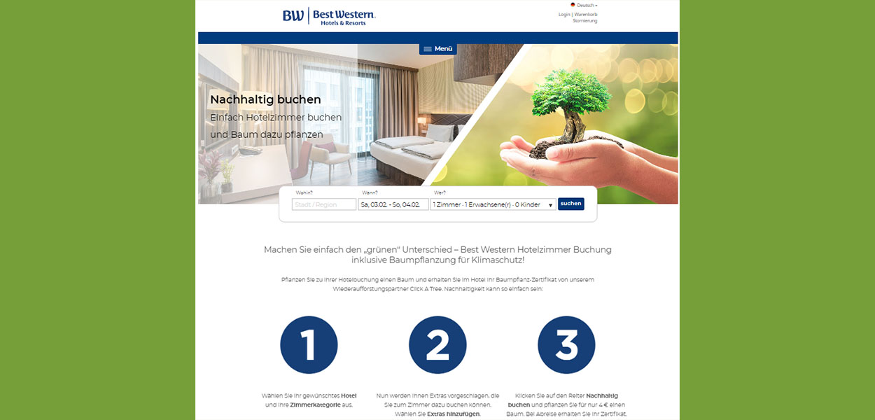 Die BWH Hotels Central Europe kooperieren mit Click A Tree: Bei jeder Buchung in einem Hotel der Gruppe über die eigene Webseite können Gäste künftig Bäume pflanzen und etwas für den Umweltschutz tun.