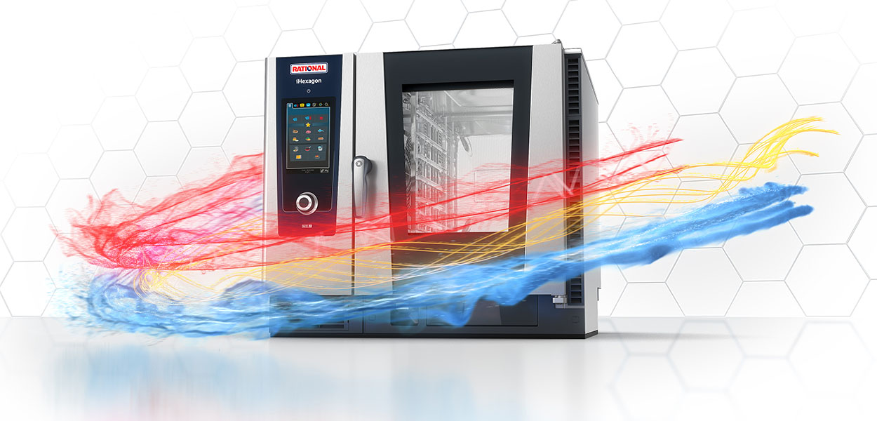 Ende Februar präsentierte Markus Paschmann, Vorstand Marketing und Vertrieb bei Rational, den iHexagon im Rahmen einer Online-Keynote. Im Mittelpunkt der Präsentation stand das Herzstück des Neuen: iClimateBoost. Die Botschaft von Rational lautet: "Der Kochassistent stimmt Dampf, Heißluft und Mikrowelle intelligent auf das jeweilige Lebensmittel ab."
