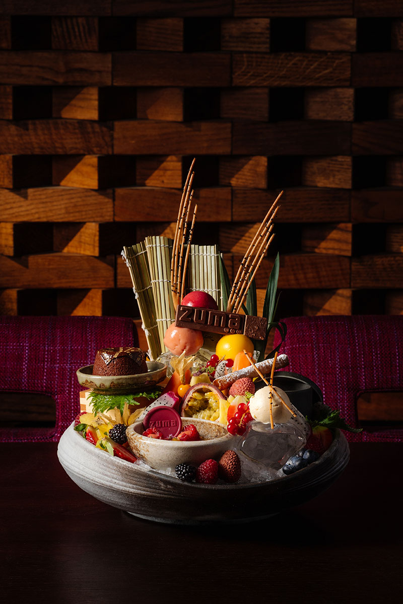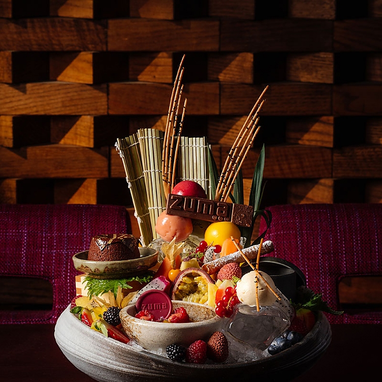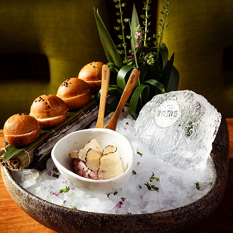 Ein Robata-Grill im Mittelpunkt der Terrasse ist ein Blickfang und gewährt Gästen einen direkten Einblick in das Herz der Zuma-Küche. Besucher werden aus dem großen Angebot prämierter und charakteristischer Zuma-Gerichte wählen können, darunter das Spicy Beef Rinderfilet mit Sesam oder der gegrillte Wolfsbarsch mit Chili und Ingwer. Begleitet werden diese kulinarischen Highlights mit einem großen Angebot an innovativen Getränken, die perfekt auf die Besonderheiten der Küche abgestimmt sind.