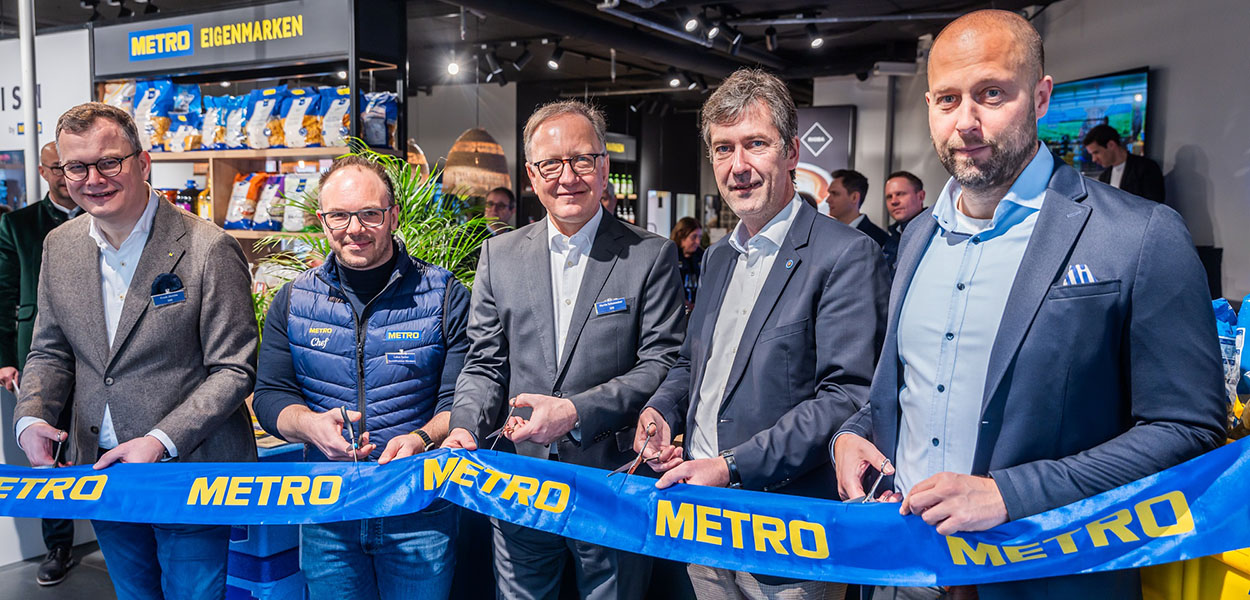 Mit der Eröffnung des neuen METRO Verkaufsbüros in der Würzburger Altstadt erweitert METRO Deutschland sein Belieferungsgeschäft um eine sehr bedeutsame Region. Oberbürgermeister Christian Schuchardt, METRO Deutschland CEO Martin Schumacher und Frank Jäniche, Geschäftsführer Vertrieb bei METRO Deutschland, zerschnitten am Dienstagvormittag zusammen mit Lukas Zacher, Geschäftsleiter METRO Nürnberg-Buch und Dr. Sascha Genders, Hauptgeschäftsführer IHK Würzburg-Schweinfurt das symbolische Band vor dem Eingang des neuen METRO Verkaufsbüros (s. Titelbild) und setzten mit ihren Eröffnungsreden verschiedene Impulse.
