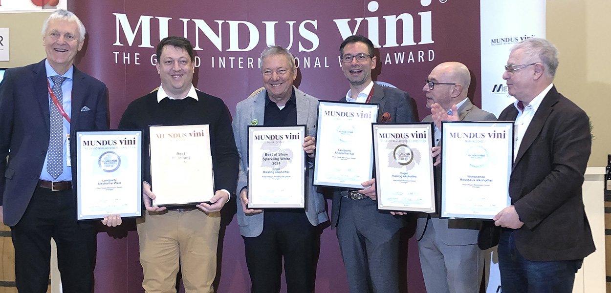 Das Messejahr 2024 konnte für den Bioweinspezialisten kaum besser starten. Zum zweiten Mal in Folge konnte das Team von Riegel Bioweine die Auszeichnung "Best Merchant" des Wettbewerbs "Mundus Vini Non-Alcoholic" von der ProWein mit nach Hause nehmen.