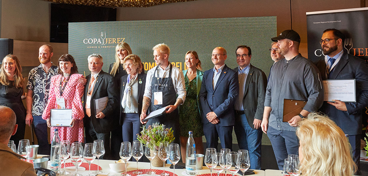 Treffpunkt für Spitzengastronomie: Die "Copa Jerez" ist ein international angesehenes Ereignis, das sowohl dem hohen Niveau der Jury als auch den teilnehmenden Teams und ihren gastronomischen Kreationen zu verdanken ist. Jahr für Jahr etabliert sie sich weiter als Referenz für internationale Wettbewerbe und als führende Fachveranstaltung für Sherry-Weine, an der einige der bedeutendsten Persönlichkeiten der Gastronomie und Önologie teilnehmen. In der letzten Ausgabe der "Copa Jerez" vertrat Deutschland im internationalen Finale das Brüderpaar Daniele Tortomasi (Sous Chef, Mandarin Oriental Savoy, Zürich) und Gabriele Tortomasi (Sommelier, Ackermannshof*, Basel). Die beiden erhielten den Preis für das kreativste Pairing. Der Gesamtsieg ging an das dänische Team Allan Schultz und Sommelier Alexander Berntsen vom Restaurant Parsley Salon in Hellerup.