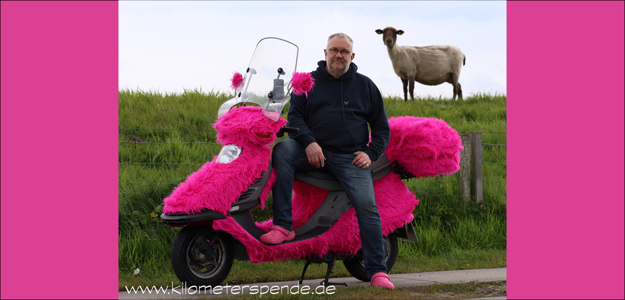 Von Ostfriesland aus einmal quer durch Deutschland – und das auf einem pinkfarbenen Plüschroller. Mit dieser Aktion will Alex Sänger auf die aufopferungsvolle Arbeit in Hospizen aufmerksam machen. Gleichzeitig sammelt er so Spenden für das Kinderhospiz "Sternenbrücke" in Hamburg. Unterstützt wird er bei dem Projekt von seinem Arbeitgeber Remira – zumal die Idee über dortige Kontakte entstanden ist.