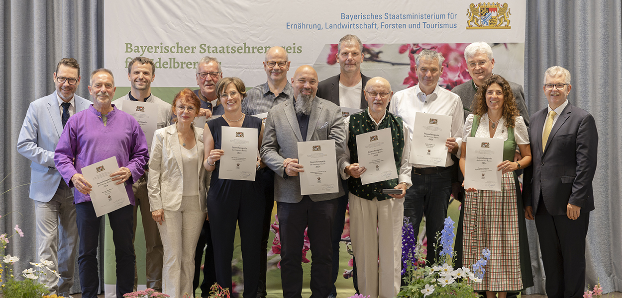 Die Landesanstalt für Weinbau und Gartenbau (LWG) hatte die eingereichten Brände im Vorfeld analytisch wie auch sensorisch geprüft und bewertet. Die Verleihung des Bayerischen Staatsehrenpreises für Edelbrenner ist ein zentrales Element der Initiative "Bayern Brand – Wir brennen für Bayern" des Landwirtschaftsministeriums und der drei Klein- und Obstbrennerverbände in den Regionen Franken, Lindau und Südostbayern.