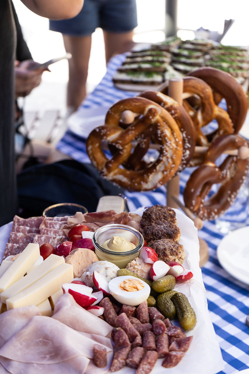 Täglich frisch werden auch leckere Grillhendl im offenen Rotisserie-Rückflammgrill zubereitet. Die Original Weißwürste, herzhafter Leberkäs und Miesbacher Wurst stammen aus dem Traditionsunternehmen Familien-Metzgerei Holnburger aus Oberbayern.