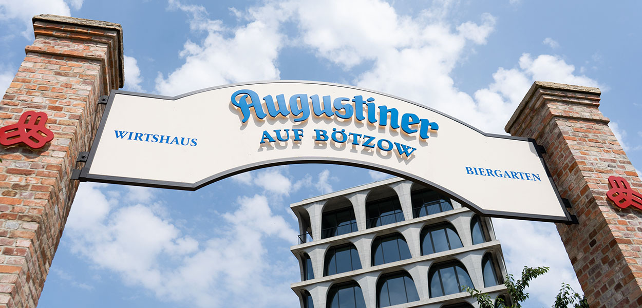 Das Gelände am unteren Ende der Prenzlauer Allee, wo die Marke Augustiner im Sommer ihr Bier ausschenken wird, hat eine lange Hopfen-Tradition. Im 19. Jahrhundert stand hier die Bötzow-Brauerei, eine der größten ihrer Art. Besonders beliebt war damals der Biergarten der Brauerei, der Platz für bis zu 6.000 Besucher bot und nach Münchener Vorbild gestaltet war. Der neue Biergarten unter der Regie des Berliner Gastronoms Josef Laggner hofft, an diese legendäre Tradition anzuknüpfen.