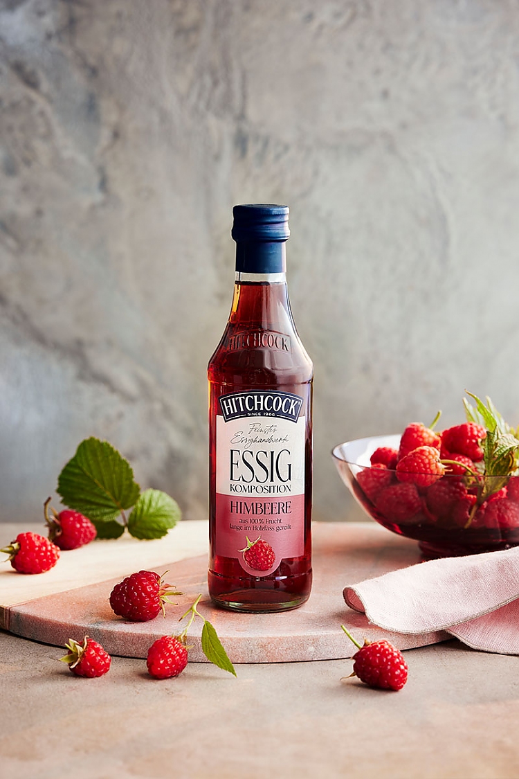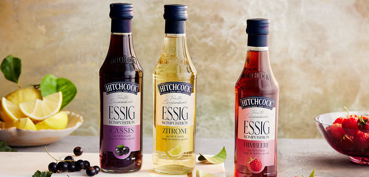 Die Marke HITCHCOCK steht für höchste Ansprüche an Qualität und ganz besondere Genusserlebnisse. Die Fruchtessig-Kompositionen in den Sorten Zitrone, Himbeere und Cassis wurden mithilfe der Expertise des erfahrenen Essigbrauers Theo F. Berl entwickelt und stehen für unverwechselbare Qualität, die Gourmets garantiert begeistert. Im mehrmonatigen Reifeprozess wird den Säften genügend Zeit gegeben, um auf natürliche Weise im Holzfass zu hochwertigem Fruchtessig zu fermentieren. Dank ihrer entschleunigten und handwerklichen Herstellung bestechen die Produkte mit einem aromatischen Geschmacksprofil, das Gerichten und Getränken aller Art eine einzigartige Note verleiht. Ob in Salaten oder Saucen, in Gemüsegerichten, Drinks oder auch als raffinierter Kick in Desserts – die Fruchtessig-Kompositionen von HITCHCOCK überzeugen mit ihrem ausgewogenen Geschmack und der feinen leichten Säure. Alle Sorten sind zu 100% aus Frucht hergestellt und begeistern mit einem fruchtigen, milden Charakter – natürlich ohne Zusatz von Konservierungsstoffen.