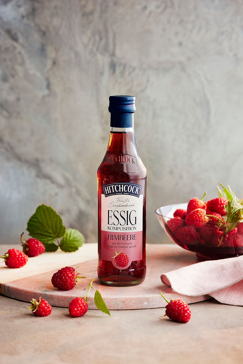 Die HITCHCOCK Fruchtessig-Komposition Himbeere verfeinert kühle Erfrischungen mit einer verführerischen Beeren-Note und entfaltet in sommerlichen Salaten ihre ganze Pracht. Außerdem harmoniert die Geschmacksrichtung perfekt mit frischem Gemüse, Nüssen und Käse. Auch in herzhaften Gerichten wird der Himbeeressig zu einem kulinarischen Geheimtipp, der Fleisch- und Geflügelgerichte mit einer fruchtigen Finesse verfeinert – ebenso wie in köstlichen Desserts, Kuchen oder sogar als Topping auf Eiscreme.