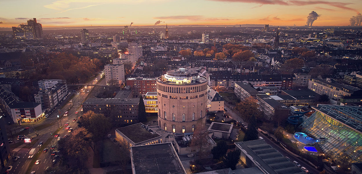 Das Wasserturm Hotel Cologne, Curio Collection by Hilton, befindet sich im einst höchsten Wasserturm Europas. Entworfen vom international preisgekrönten Designstudio Goddard Littlefair beherbergt es 88 Gästezimmer und Suiten, das Tapps Spa, ein Fitnessstudio sowie eine Bar und ein Restaurant. Es verfügt über neun vollständig flexible Veranstaltungs- und Tagungsräume, die zusammen eine Veranstaltungsfläche von 500 qm ergeben. Auf dem Dach befindet sich mit der Bar Botanik die einzigartige 360-Grad-Rooftop-Bar in Köln. Das Hotel liegt weniger als fünf Minuten von wichtigen Sehenswürdigkeiten wie dem Dom, dem Kölner Schokoladenmuseum und dem Rhein entfernt.