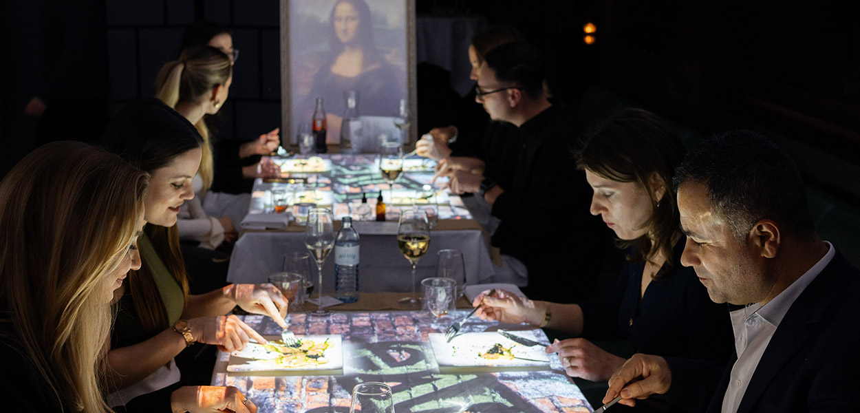 Ergänzend zum kulinarischen Erlebnis führt die zweieinhalbstündige Dinner-Show mit sieben Gängen durch die magische Welt von Picasso, Michelangelo, Banksy & Co. Jeder der sieben Gänge ist einem Künstler sowie einem seiner Werke gewidmet. Je Gang dürfen Gäste malen, aufregenden Kurzgeschichten lauschen oder knifflige Rätsel lösen.