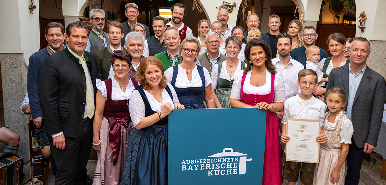 Nun haben 24 bayerische Gastronomen wegen ihrer besonderen Verdienste um bayerische Gerichte das begehrte Prädikat mit Rauten für „Ausgezeichnete Bayerische Küche" erhalten. Im Rahmen eines Festaktes in München überreichte ihnen Ernährungsministerin Michaela Kaniber gemeinsam mit Angela Inselkammer, Präsidentin des Bayerischen Hotel- und Gaststättenverbands (DEHOGA Bayern), die Urkunden.