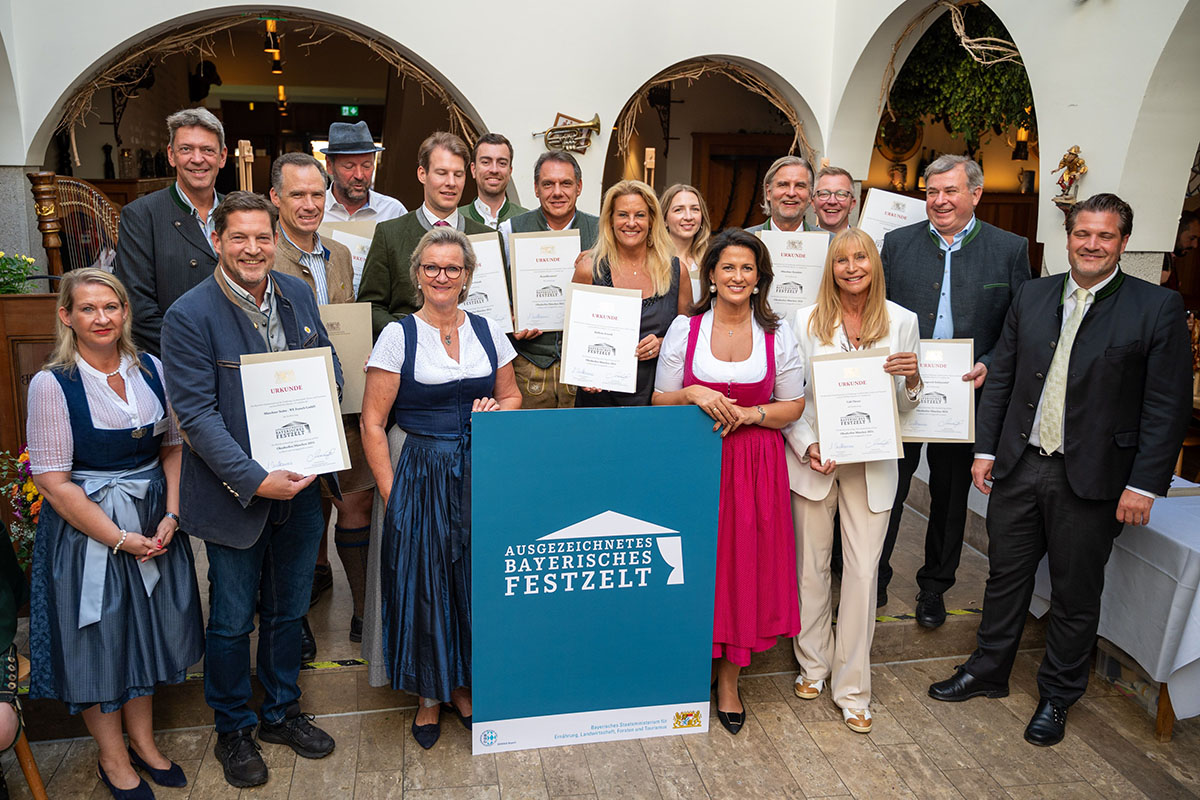 Mit dem Prädikat "Ausgezeichnete Bierkultur", das besonderes Engagement für die Genussvielfalt bayerischer Bierspezialitäten hervorhebt, sind vier Gastwirte geehrt worden. Und dafür, dass sie regionale Produkte auch auf Großveranstaltungen wie dem Münchner Oktoberfest einsetzen, erhielten 14 bayerische Festwirte die Anerkennung für ihr „Ausgezeichnetes Bayerisches Festzelt".