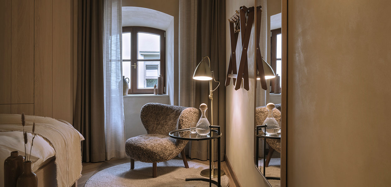 Bayerischer Muschelkalk, Lehmputz, deutsche Eiche, sämisch gegerbtes Leder und handgeschmiedete Nägel – die Essenz der Tradition in moderner Form können Gäste ab sofort im Herzen der bayerischen Hauptstadt erleben. Nach dem Motto "Beim Pfister zu Hause" öffnen sich auf 28 bis 62 Quadratmetern Wohn- und Erlebnisräume als Hommage an die Geschichte des 1578 errichteten Gebäudes der Hofpfisterei.