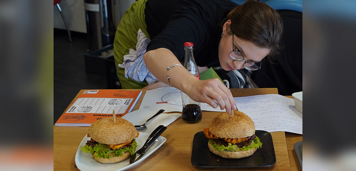 Neben tiefen Einblicken in die Burgerproduktion und das Category Management von Salomon FoodWorld stand ein besonderes Highlight im Fokus: Die Azubis hatten die Chance, zusammen mit Sternekoch Robert Maas ein eigenes veganes Burgerpatty zu kreieren. Aus Zutaten, die auch Salomon FoodWorld in seinen Produkten verwendet – wie alternative Proteine und pflanzliche Bindemittel – entwickelten die Nachwuchstalente individuelle, handwerklich hergestellte Burgerpatties. Diese traten in einer spannenden Vergleichsverkostung gegen das beliebte "Green Heroes Plant Crunchy Chik'n® Burger" von Salomon FoodWorld an.