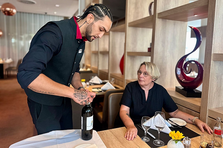 Die 41-Jährige gehört heute gemeinsam mit Ausbilderin Judith-Barbara Hindemitt zu den Restaurantgästen. Selbst während ihres Gesprächs beim Essen haben die beiden jeden Handgriff ihrer Schützlinge im Blick. "Die besten Lehrer während meiner Schulzeit haben uns nah begleitet, gefordert und so gefördert", sagt Judith-Barbara Hindemitt. Diese Erfahrung machte sie zu ihrem Credo. Dabei ist herausfordernd, dass neben den verschiedenen Charakteren die Lebensumstände individueller sind, denn je. "Die Auszubildenen sind alles außer Schublade, genauso flexibel führen wir sie", erläutert Judith-Barbara Hindemitt. Ergänzend dazu bekommt künftig beim Ausbildungsbeginn jeder einen Paten aus dem dritten Lehrjahr.