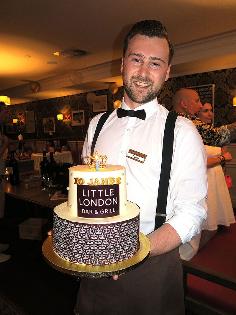 Wirt Arno Kahl (Zar), der im Little London auch wegen der riesigen Gin-Auswahl gern zu Gast ist, sagte beim Geburtstagsfest: "Das Little London ist das exklusivste und beste Steakhaus mit einem Chef, der unglaublich viel Herzblut reinsteckt."