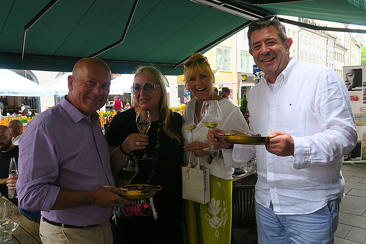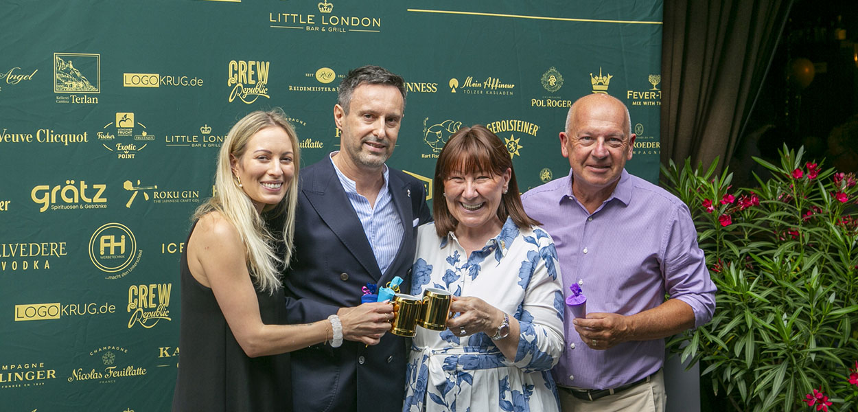 Dankte für die großzügige Spende für benachteiligte Münchner Kinder: OB-Gattin und Schirmherrin Petra Reiter (2. v. r.) mit Little-London-Gründer Thomas Hirschberger (r.), Geschäftsführer und Gastgeber Mario Pargger und Lebensgefährtin Madeleine Heinrich. Foto: Gerd Höllering