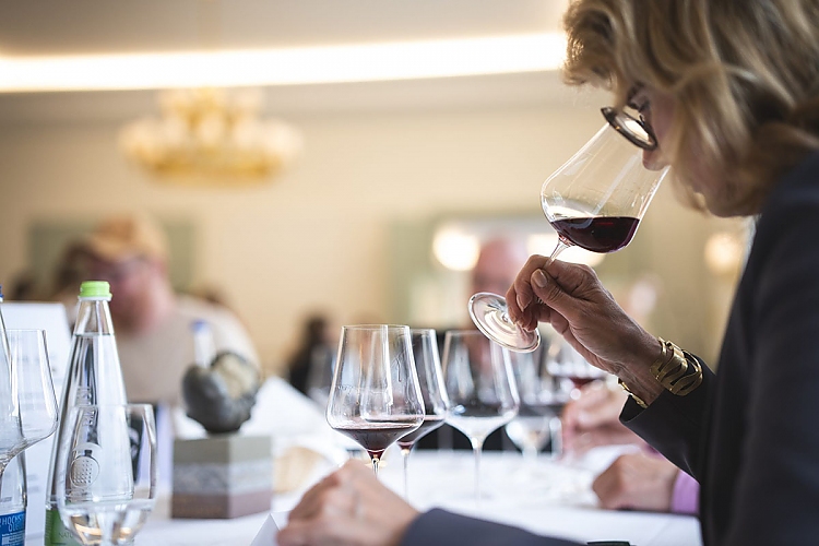 Bereits am frühen Morgen begann die erste Verkostungsrunde im Gutshof des Weinguts & Hotels Zehntkeller in Iphofen. Sommeliers, Fachjournalisten, Gastronomen und Weinkenner aus ganz Deutschland nahmen an den Tischen Platz. Ralf Schwarz, Chef-Önologe des Bezirks Unterfranken, überwachte die Abläufe. Die edlen Tropfen wurden stilecht in der Gold Edition von Gabriel-Glas eingeschenkt – Premiumgläser mit Sofort-Dekantiereffekt, die dem Wein von Beginn an viel Luft zum Atmen geben.