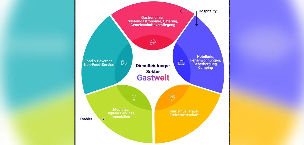 Die Gastwelt ist ein vom Fraunhofer IAO und der Denkfabrik im Jahr 2022 neu konzipierter Dienstleistungssektor, der Gastlichkeit und Lebensqualität als gemeinsames Serviceprodukt in den Mittelpunkt stellt. Die Gastwelt ist durch ihre 250.000 mittelständischen Betriebe eine tragende Säule der deutschen Wirtschaft und mit 6,1 Millionen Mitarbeitenden der drittgrößte Arbeitgeber Deutschlands. Sie setzt sich aus den Gastwelt-Sektoren Beherbergung, Gastronomie, Foodservice, Tourismus und Freizeitwirtschaft zusammen und prägt damit den Alltag von Millionen Menschen. Als Arbeitgeber, Standortfaktor und Innovationsmotor trägt die Gastwelt maßgeblich zur wirtschaftlichen Stabilität bei und schafft als #HerzUnsererGesellschaft Orte der Begegnung und des sozialen Miteinanders. Ihre enge Verzahnung mit Handel, Mobilität, Digitalisierung und Infrastruktur macht sie zu einer unverzichtbaren Querschnittsbranche mit Millionen Arbeitsplätzen und hoher Standorttreue.