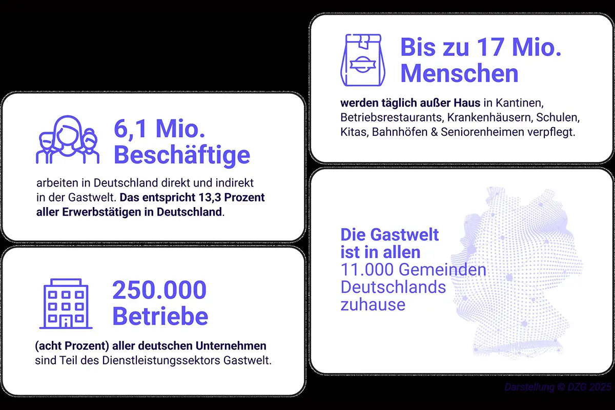 Die DZG sieht in den aktualisierten Zahlen einen klaren Arbeitsauftrag: Die Gastwelt sei nicht nur konjunkturell bedeutsam, sondern auch sozial unverzichtbar – und verdiene eine strategische Rolle in der Politikgestaltung. Der Aufschwung der Gastwelt könne nur fortgesetzt werden, wenn Themen wie Arbeitskräftegewinnung, Standortförderung, Bürokratieabbau und steuerliche Fairness jetzt entschlossen angegangen würden. Klinge: "Mit dem neuen Big Picture 'Gastwelt' spielte die Branche bei den Schlüsselkennzahlen endlich auf Augenhöhe mit anderen Wirtschaftssektoren wie der Automobilindustrie, der Bauwirtschaft oder dem Handwerk."