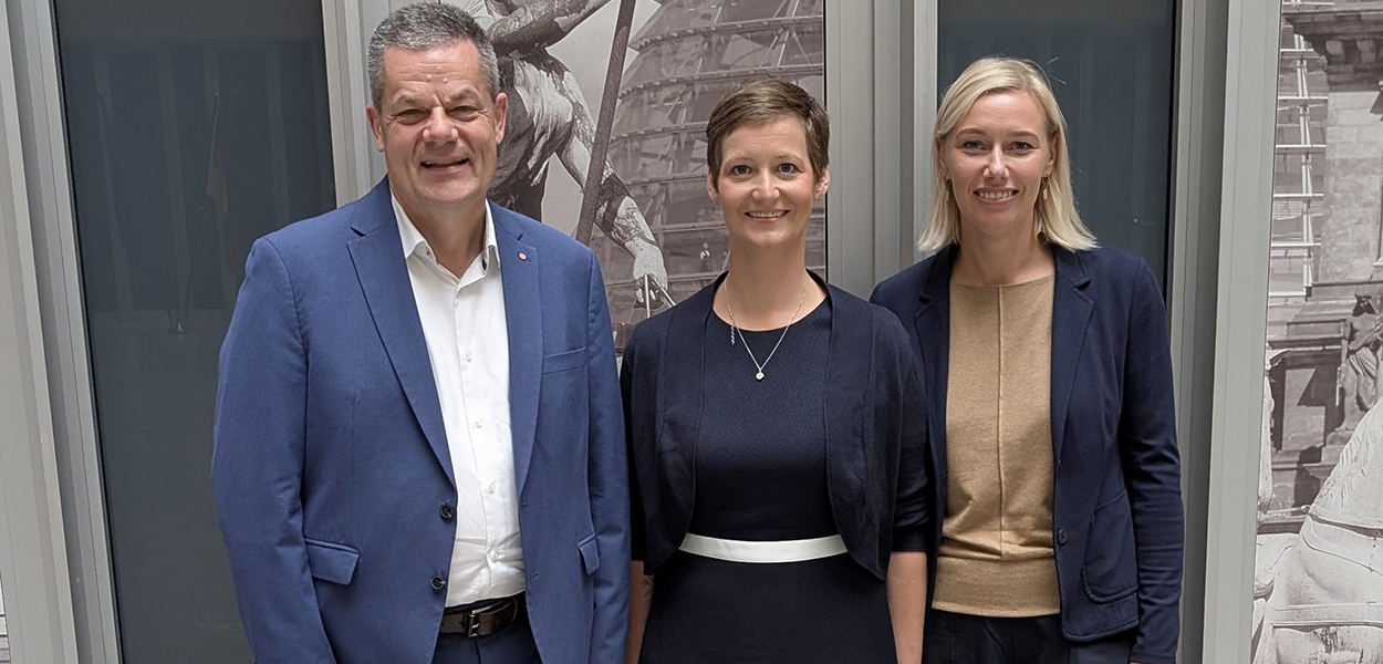 Das Team der Dehoga Deutsche Hotelklassifizierung GmbH (v. r. n. l.): Kristin Panagiotakis (Referentin), Christin Neumann (Geschäftsführerin), Markus Luthe (Geschäftsführer). Foto: Dehoga Deutsche Hotelklassifizierung GmbH
