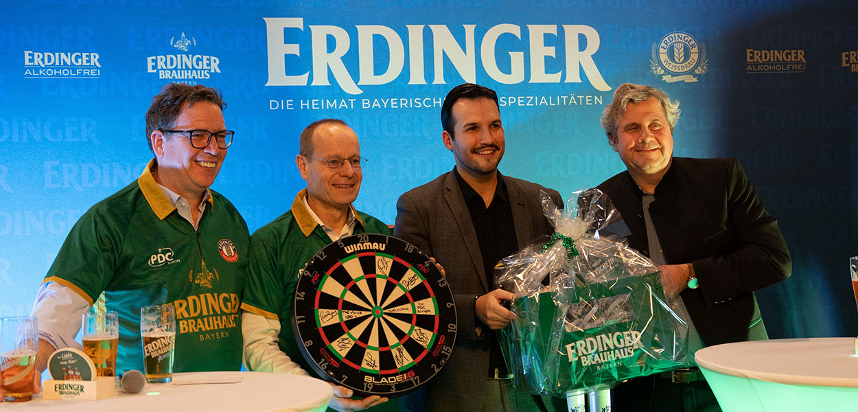 Die Privatbrauerei Erdinger Weißbräu wird offizieller Bierpartner der Professional Darts Corporation Europe und somit Teil eines der aktuell größten Spektakel der Sportszene. Der Dartssport hat Europa fest im Griff und versetzt seit Jahren auch abseits der PDC World Darts Championship im berühmten "Ally Pally" ganze Städte in Partystimmung. Pünktlich zum Ticketverkaufsstart der neuen Saison können sich Fans bei über 20 Veranstaltungen in Deutschland, Österreich, den Niederlanden und Polen auf Erdinger Brauhaus-Bierspezialitäten freuen.