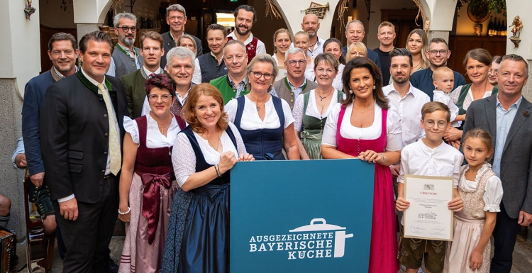 "Ausgezeichnete Bayerische Küche", "Ausgezeichnetes Bayerisches Festzelt" und "Ausgezeichnete Bierkultur": Ernährungsministerin Michaela Kaniber prämiert 38 Wirte.
