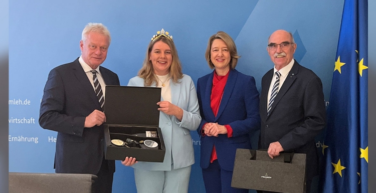 Der Präsident des Fränkischen Weinbauverbands und die Fränkische Weinkönigin sprachen mit Bundeslandwirtschaftsminister Alois Rainer.