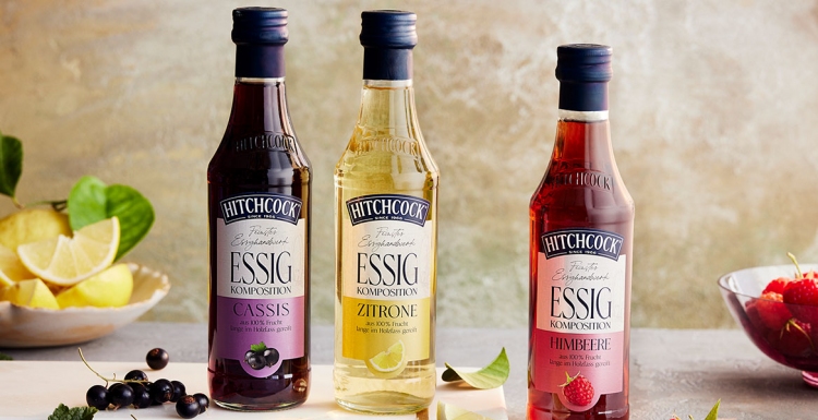 Die Fruchtessig-Kompositionen von HITCHCOCK sind zu 100% aus Frucht hergestellt und überzeugen mit ihrem ausgewogenen Geschmack und der feinen leichten Säure.