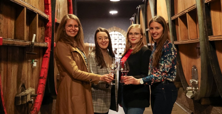 Die drei Kandidatinnen zur Wahl der 66. Fränkischen Weinkönigin lernten – in Begleitung der Deutschen Weinkönigin – auf einer Rundfahrt das fränkische Weinanbaugebiet besser kennen.