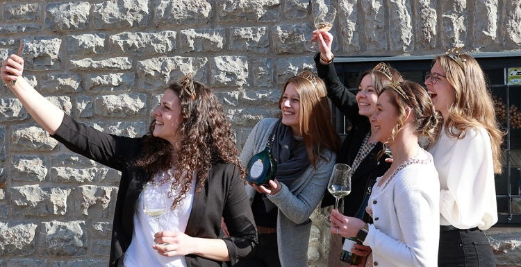 Drei Deutsche Weinhoheiten besuchen das Weinanbaugebiet Franken.